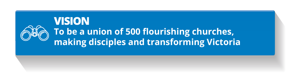 Our vision is to see a union of intercultural, Christ-centred churches, with flourishing, godly pastors and leaders who hold to Baptist distinctives as guiding principles. They maintain unity in diversity and are entrepreneurial, adaptable and have a missionary-minded spirit. Their focus is on developing followers of Jesus who are positively impacting and transforming society.